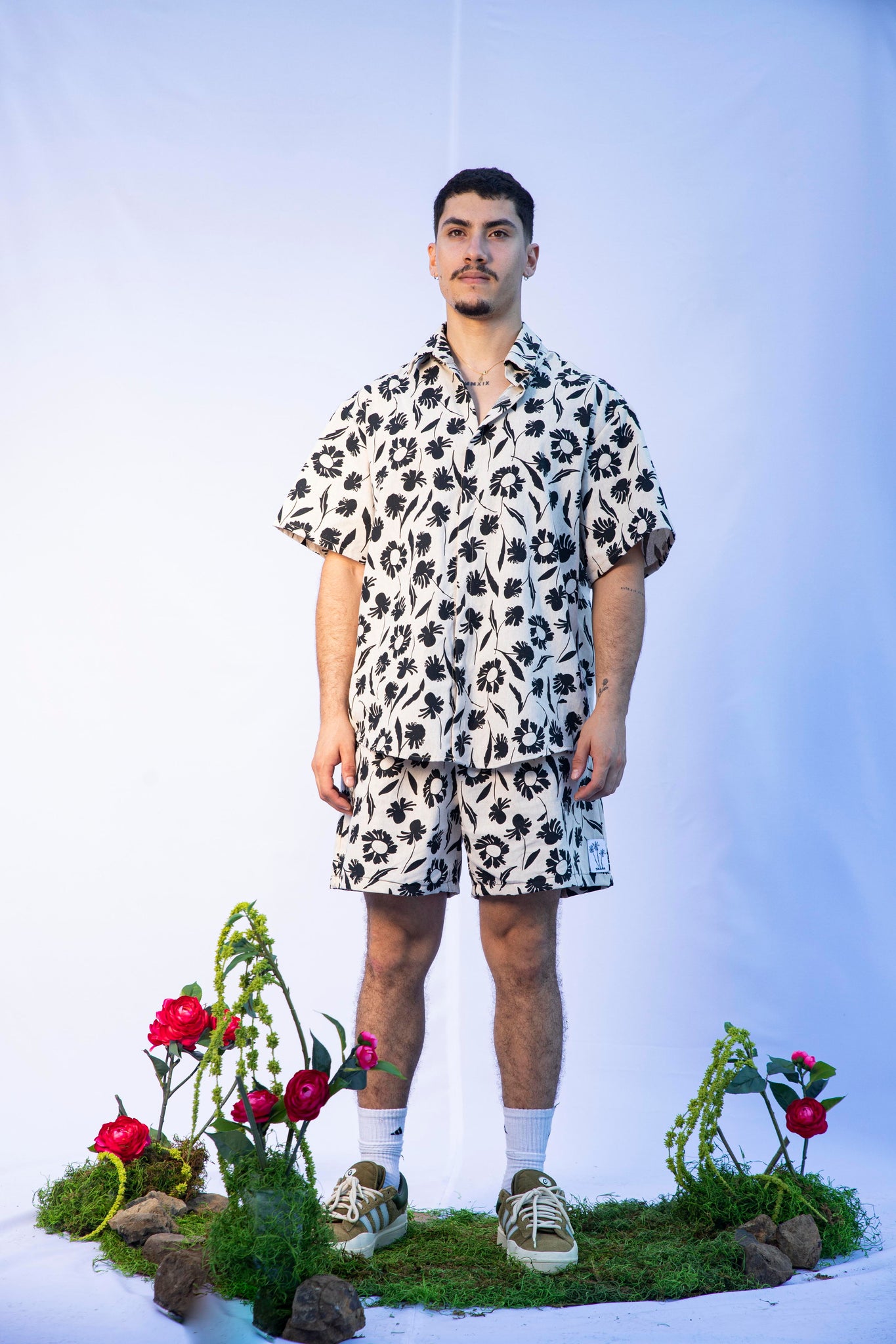 Black and white unique flower shirt with invisible button. Oversized shirt, fits medium and large.